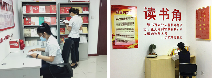 部分黨支部根據(jù)自身情況,增設(shè)“黨員、職工學(xué)習(xí)桌”、“讀書角”讓廣大黨員同志在工作之余從書中汲取營(yíng)養(yǎng),開闊視野,提升黨性修養(yǎng)。