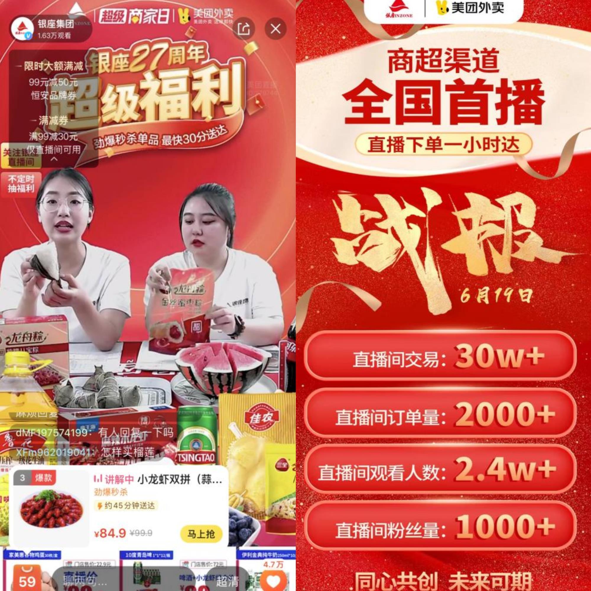 近日,為探索新場(chǎng)景營(yíng)銷(xiāo),打造“直播下單、一小時(shí)達(dá)”的即時(shí)零售新玩法,銀座集團(tuán)聯(lián)動(dòng)美團(tuán)超市閃購(gòu)組織開(kāi)展首場(chǎng)直播活動(dòng)。