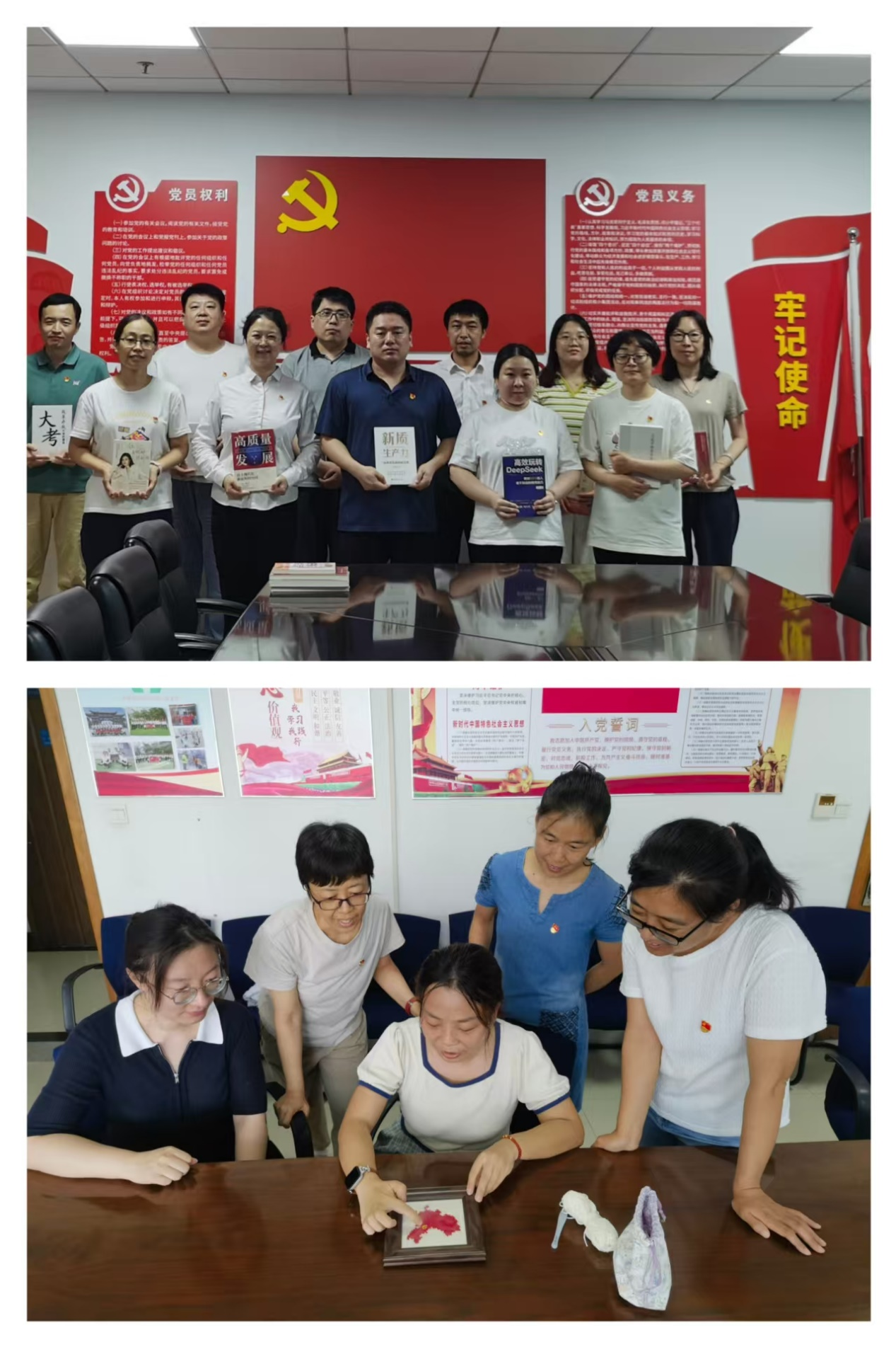 為深化黨員身份意識、強化黨性修養,第三黨支部、第七黨支部開展“贈送政治生日書籍”特色活動。通過贈送書籍,引導黨員在閱讀中回顧黨的奮斗歷程,從革命先輩的精神中汲取力量,將理論學習轉化為服務群眾、推動工作的實際行動。第三黨支部支部黨員還手工鉤織中國地圖,成為“不忘初心、牢記使命”的生動教材,使黨員在儀式感、參與感中重溫初心使命,擦亮忠誠干凈擔當的黨員底色。
