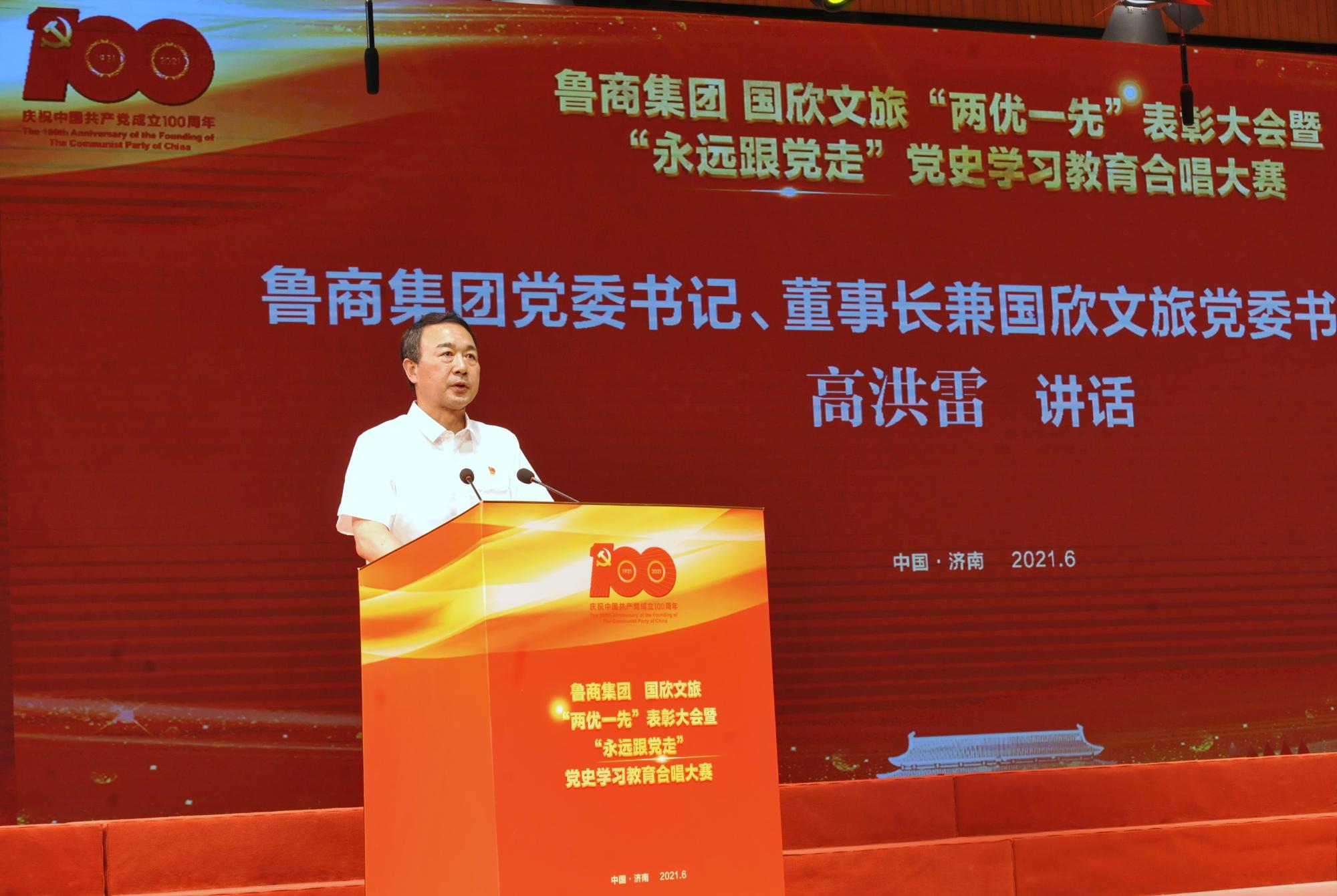 為慶祝中國共產(chǎn)黨成立100周年,6月23日,魯商集團(tuán) “兩優(yōu)一先”表彰大會暨“永遠(yuǎn)跟黨走”黨史學(xué)習(xí)教育合唱總決賽舉行。魯商集團(tuán)黨委書記、董事長兼國欣文旅黨委書記、董事長高洪雷出席活動并講話。