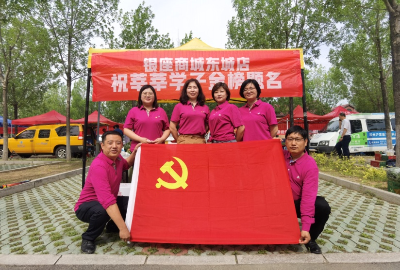 銀座泰萊區域組織開展“愛心奉獻 助夢啟航”青年志愿服務活動,為考生和陪考家長精心準備茶水、鮮花等物品,志愿者安撫家長們緊張的心情,為莘莘學子加油鼓勁。銀座東營區域東城店組建“青年愛心送水服務隊”,前往考點門口,為考生及家長提供免費送水服務。