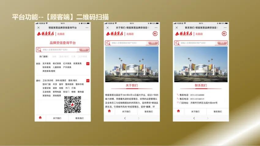 為優(yōu)化守信經(jīng)營(yíng)氛圍及健全商戶信用管理體系,由營(yíng)運(yùn)團(tuán)隊(duì)自主研發(fā)搭建“商戶信用查詢平臺(tái)”,該平臺(tái)通過(guò)顧客前端與管理后端兩個(gè)端口管理支撐實(shí)現(xiàn)四個(gè)功能,前端消費(fèi)者可通過(guò)展廳二維碼掃描隨時(shí)查看品牌經(jīng)營(yíng)資質(zhì),打消顧慮實(shí)現(xiàn)信用公開(kāi)可視化;后端設(shè)定提前30天預(yù)警功能實(shí)現(xiàn)授權(quán)資質(zhì)和工廠資質(zhì)預(yù)警管理自動(dòng)化,多維度有效管理控制商戶風(fēng)險(xiǎn),引導(dǎo)商戶由被動(dòng)管理走向自助管理。