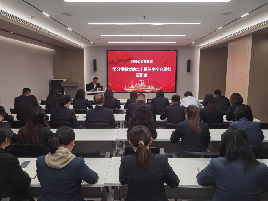 為深入學(xué)習(xí)貫徹黨的二十屆三中全會精神,引導(dǎo)全體黨員干部解放思想、奮發(fā)進(jìn)取,全面推動各項任務(wù)落地落實,10月21日,財務(wù)公司舉辦學(xué)習(xí)貫徹黨的二十屆三中全會精神宣講會,黨支部書記徐峰作專題宣講。